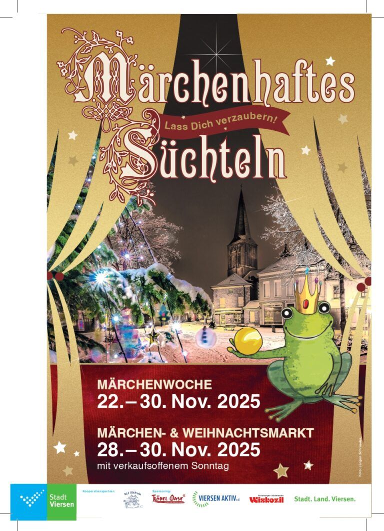 Von Samstag, 22. bis Sonntag, 30. November 2025 steht Süchteln ganz im Zeichen der Märchenwoche. Mit dem abschließenden Märchen- und Weihnachtsmarkt am Wochenende vom 28. bis 30. November läuten das Citymanagement der Stadt Viersen und der Arbeitskreis Süchteln endgültig die Weihnachtszeit in der „Irmgardisstadt“ ein. Wenn ab Samstag, 22. November 2025, die Schaufenster in den …