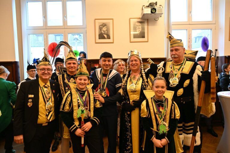 Süchtelns Ortsbürgermeister Wolfgang Genenger und Beigeordneter Ertunç Deniz bemühten sich vergeblich, das Verwaltungsgebäude zu verteidigen. Gegen das Dreigestirn, die Kinderprinzenpaare und ihr närrisches Gefolge waren sie chancenlos. Danach ging es weiter zum Lindenplatz, wo Süchtelns 1. Dreigestirn mit Prinz Nicolai I. (Rattay), Jungfrau Thomina (Thomas Biastoch) und Bauer Uwe (van de Venn) offiziell den Straßenkarneval …