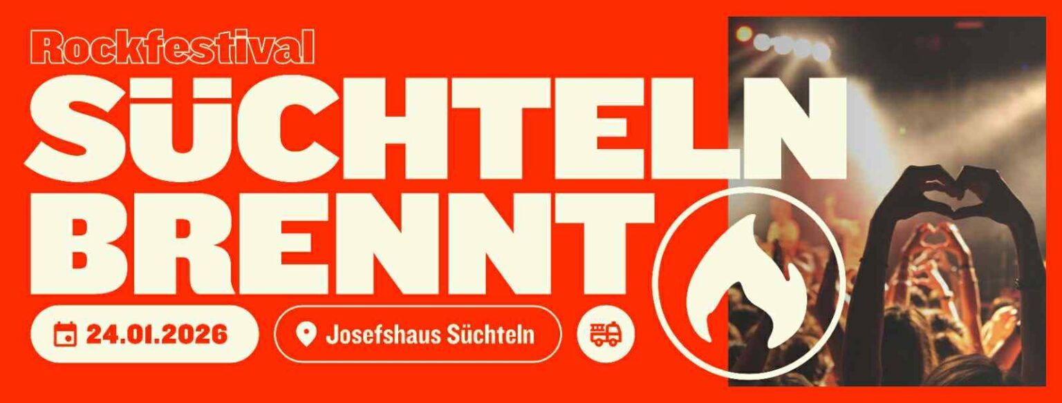 Am Samstag, 24.01.2026, heißt es erneut “Süchteln brennt” und im Josefshaus in Viersen-Süchteln steigt wieder das bekannte Indoor-Festival.